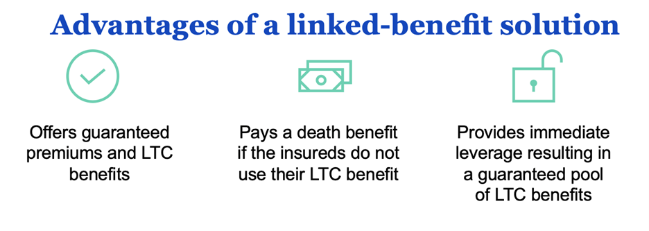 It’s an asset-based strategy designed to help clients maximize dollars earmarked for care, while protecting what they’ve built for retirement and legacy.Â